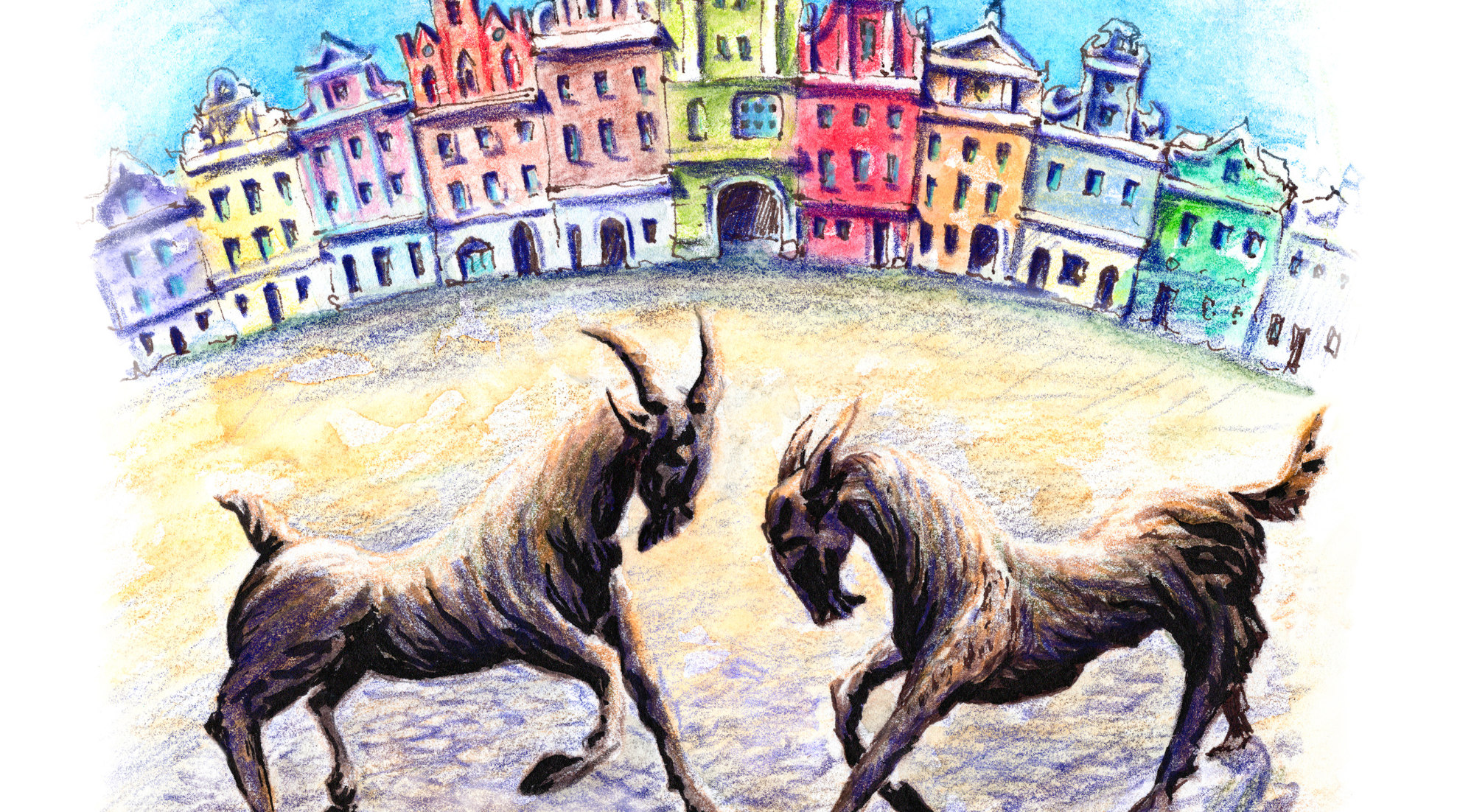 – kolorowy Stary Rynek i koziołki na wieży ratusza